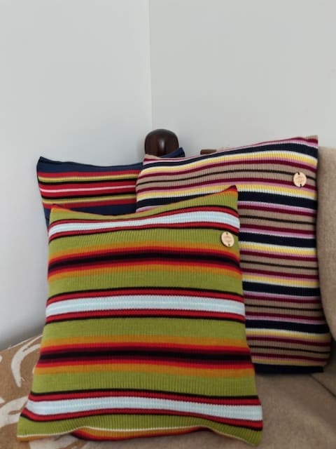 Kootud mehaanilisel kudumismasinal Vana-Järvamaa rahvusmustriga padjakate