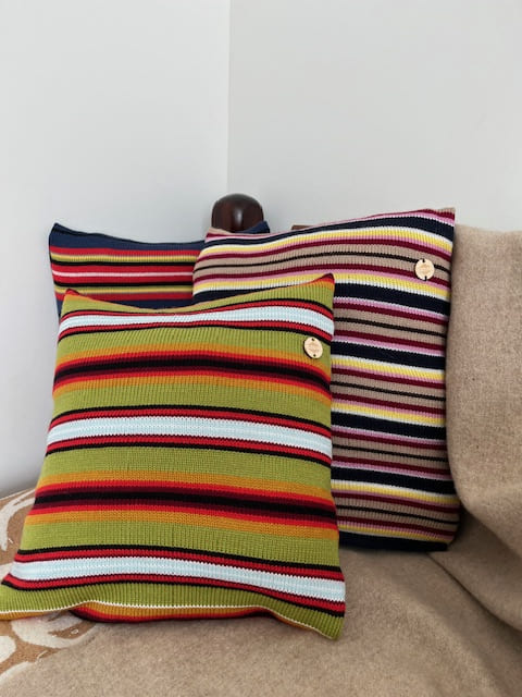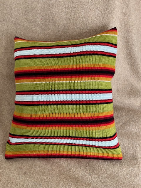 Kootud mehaanilisel kudumismasinal Vana-Järvamaa rahvusmustriga padjakate ja poncho